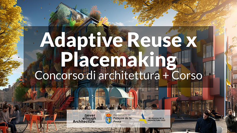 Never Enough Architecture (NEA), la piattaforma che supporta i concorsi di architettura con corsi gratuiti tenuti da esperti, in occasione della Settimana dell'Architettura di Madrid e in collaborazione con il Comune di Pelayos de la Presa (Madrid, Spagna) presenta una nuova iniziativa che unisce la competizione progettuale ad un corso su "Adaptive Reuse" e "Placemaking" offrendo ai partecipanti una formazione completa su queste due tematiche.