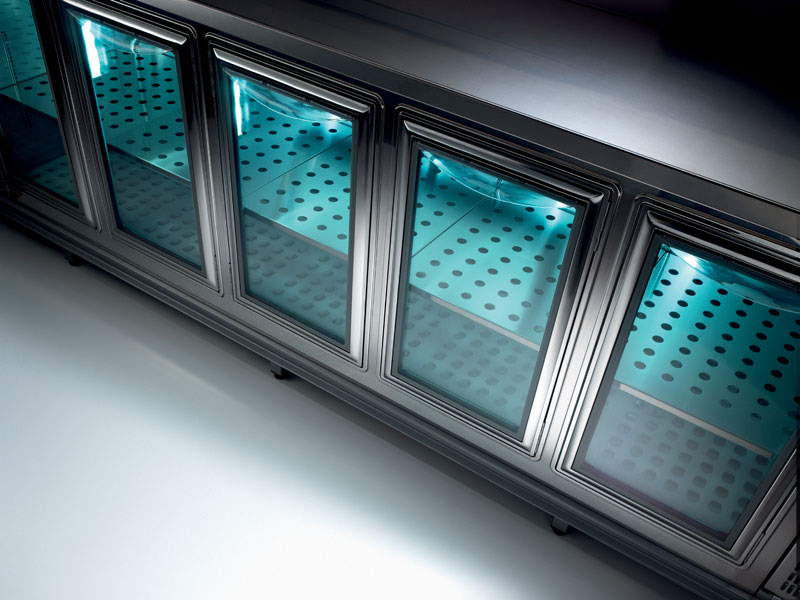 Quest’ultimi vengono illuminati da LED, inserite lateralmente e sulla parte superiore, per garantire una luminosità adeguata in ogni angolazione della vetrina ed esaltare i cibi. Sul retro, queste apparecchiature presentano una chiusura in plexiglas che garantisce l’igiene e la sicurezza degli alimenti non confezionati.