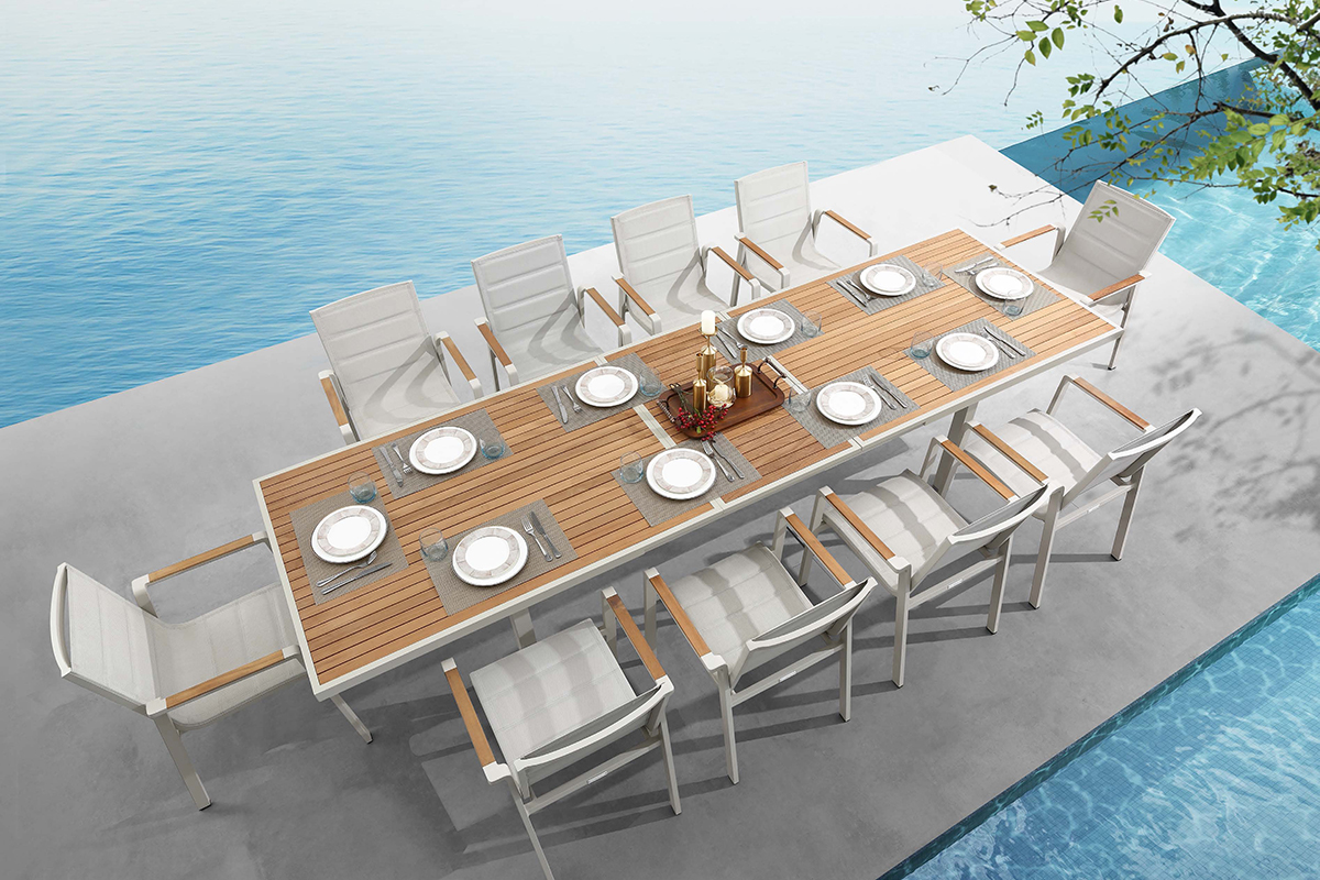 Higold Milano è un marchio di arredi da esterno noto per il suo stile sofisticato e la qualità impeccabile. Ogni pezzo è realizzato con materiali di alta qualità, come l’alluminio e il teak, e rifinito con cura, il che li rende resistenti agli agenti atmosferici e allo stesso tempo belli da vedere.