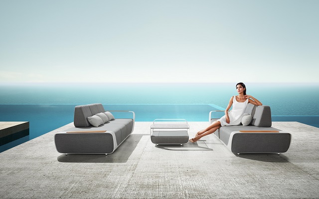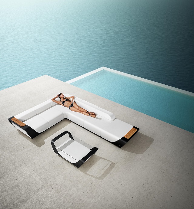 Essendo concepita per l’arredamento esterno, il team di design Pininfarina si è ispirato al dinamismo, all’eleganza e alla purezza delle onde dell’oceano, allo spazio vuoto che si crea quando un’onda si rompe, sfociando in un’onda vuota o tubolare. Il cuore della Collezione è la struttura, una fascia in alluminio che sostiene i cuscini e diventa l’elemento iconico dell’intera Collezione. Caratterizzata da linee fluide – come quelle dell’onda – la fascia, al di là di un elemento estetico, diventa anche un elemento funzionale, come un bracciolo rigido che può essere utilizzato per appoggiare oggetti. La scelta dei materiali è frutto dell’esperienza progettuale a 360° di Pininfarina: l’alluminio – proveniente dal settore automobilistico – per la struttura, i tessuti – utilizzati negli yacht per la loro resistenza – per i cuscini.