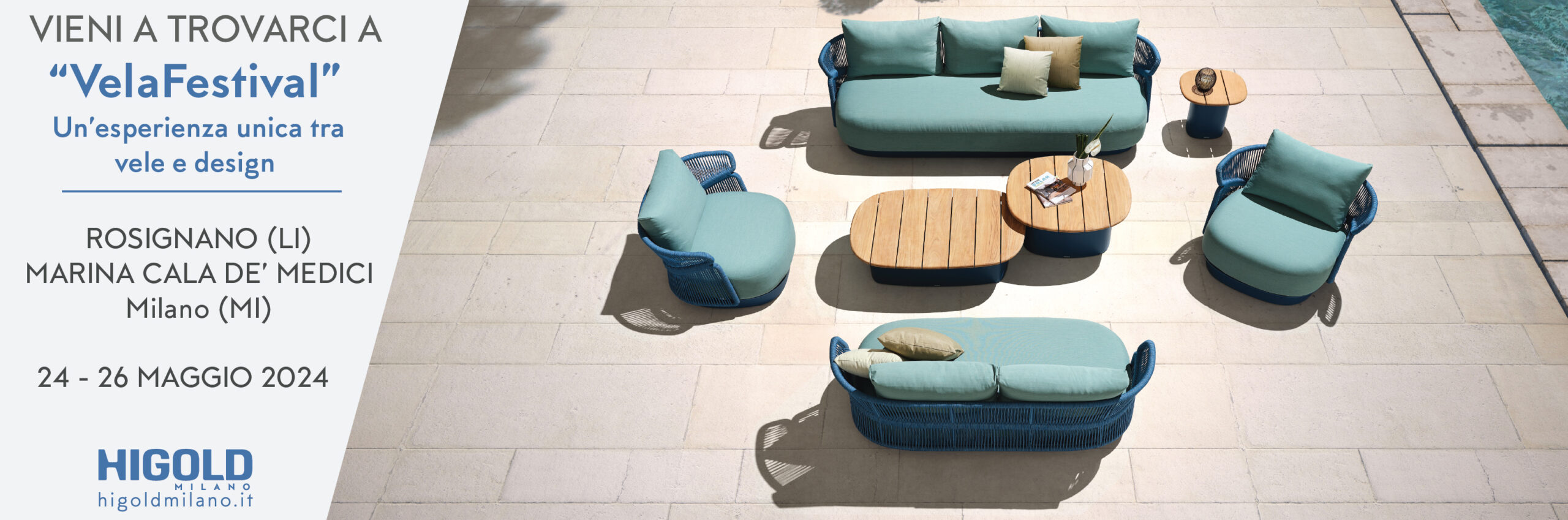 Durante il VelaFestival, i visitatori avranno l’opportunità di avvicinarsi alle collezioni di Higold Milano, che spaziano da sofisticati divani lounge a sedie da pranzo di eleganza senza tempo, da tavoli accattivanti a poltrone reclinabili pensate per il massimo relax. Ogni elemento si distingue per una fusione armoniosa tra forma e funzione, creando ambienti esterni che invitano al piacere del vivere all’aria aperta.