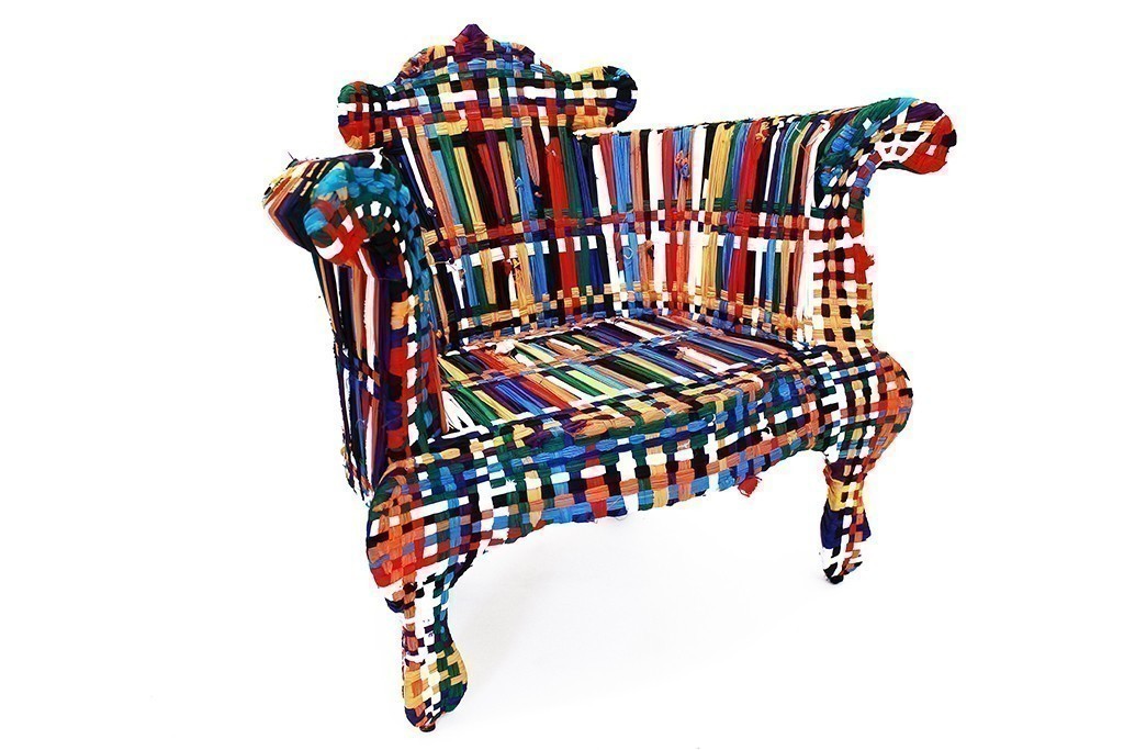 La sesta invece è stata un mix tra la struttura minimalista e l’aggiunta di tessuto, cuoio o anche plastica che si è poi evoluta nella tecnica numero sette con l’impiego del 9 mm e non più il 5 mm. Passando poi al periodo barocco sviluppando linee più ricche di decori, rimovibili e di colori diversi dalla struttura. La nona tecnica, “stracciona”, impiegava tessuti colorati intrecciati a zig zag per arrivare alla tecnica “Codice a barre” dove il tessuto veniva disposto in maniera più ordinata e in verticale.
