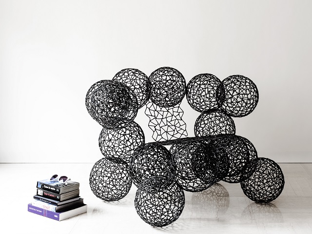 E’ il caso della Che Palle, vincitrice del premio Silver A’ Design Award di quest’anno, composta da 18 sfere di ferro verniciato assemblate insieme. Ricorda molto la forma dell’uva, alla quale si ispira Anacleto, dopo il viaggio in Indonesia, là dove l’uva era il frutto dei ricchi e pochi potevano permetterselo, il designer iniziò a crearne una fatta di tondini di ferro, per poi scomporla e farla diventare una seduta.