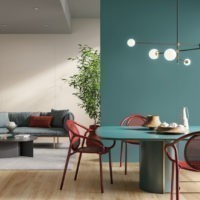 Queste sfumature giocano con la luce naturale e quella artificiale, qualificando i diversi spazi. Il colore crea un coinvolgimento emotivo e incide sullo stato d’animo di chi vive lo spazio: i toni del blu e dell’azzurro donano calma, quelli più caldi del rosso stimolano l’energia, il verde – che contiene sia toni caldi che freddi – concentrazione e benessere.