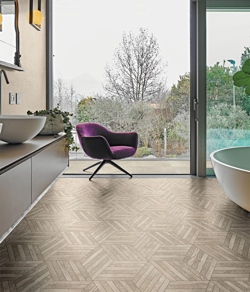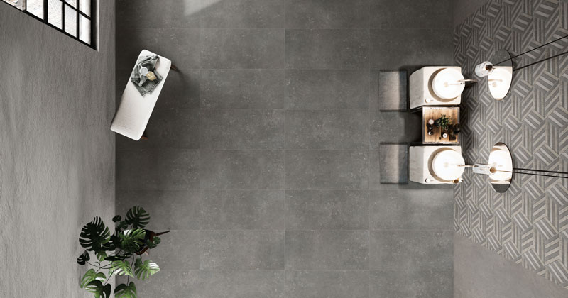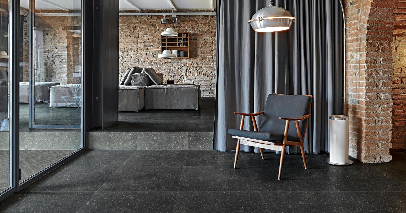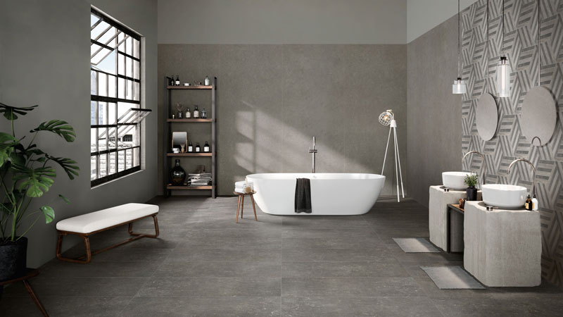 La nuova collezione di Florim, Atmosphères de Rex, nasce proprio dall’esaltazione e dalla reinterpretazione in chiave contemporanea di un materiale dal lusso semplice come la Pierre Bleue.
