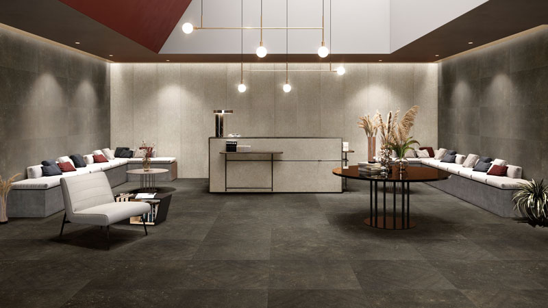 La collezione ha una resa estetica solida e materica ed è proposta in una varietà di formati, colori e finiture che la rendono versatile ed applicabile in diverse tipologie di ambienti.