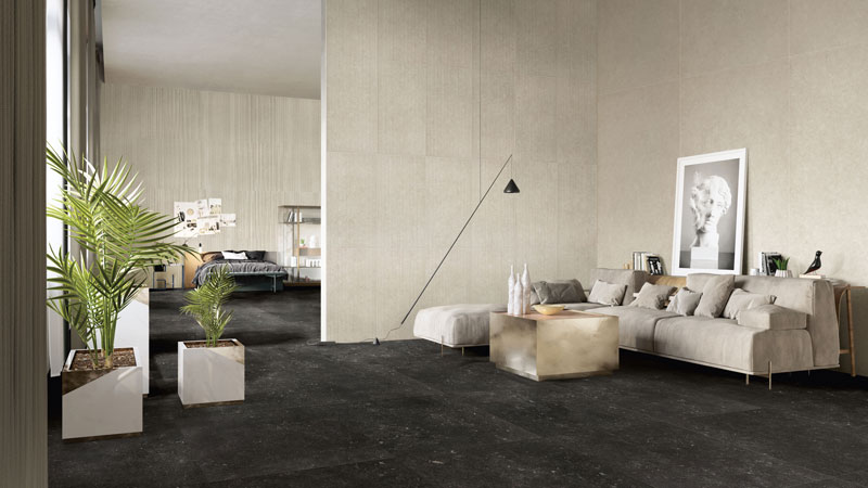 Oltre ai formativi tradizionali infatti, Atmosphères de Rex è disponibile anche in grandi lastre (fino a 120x280cm in 6mm di spessore) diventando sintesi tra la tradizione che il richiamo alla pietra belga porta e la forza dell’innovazione made in Florim.