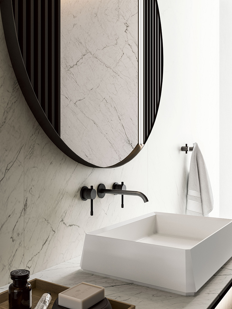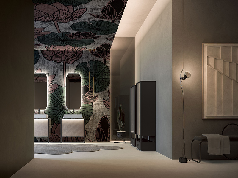 Oltre a questo dettaglio di stile dedicato alla luce di atmosfera, Cerasa ha declinato anche una serie di proposte dedicate all’illuminazione in coordinato con gli arredi, declinandole a parete, a specchio o a soffitto. I materiali e le forme con cui sono realizzate queste lampade richiamano i dettagli d’arredo, ma le luci Cerasa si prestano anche a impreziosire soluzioni più minimal di arredo bagno. Ball e Candle, ad esempio, propongono lavorazioni del vetro in due forme diverse, dove le finiture metalliche si coordinano con la rubinetteria, i dettagli laterali dei mobili e gli accessori. La lampada da soffitto Vertical, invece, realizzata in ottone spazzolato e utilizzabile in composizione singola o di gruppo, richiama con eleganza i dettagli geometrici di Honey.
