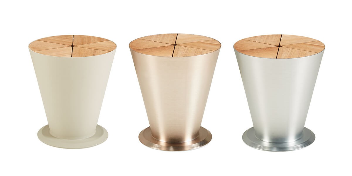 Il design del tavolino ICOO si caratterizza per eleganza ed esclusività, raggiunta grazie all’utilizzo di materiali di alto prestigio, quali l’alluminio, che funge come corpo principale e contenitore interno del secchiello del ghiaccio, ideale nelle calde giornate estive, per raffreddare le bevande oppure come area di stoccaggio per conservare piccoli prodotti. Il coperchio è invece realizzato in Teak o in HPL.