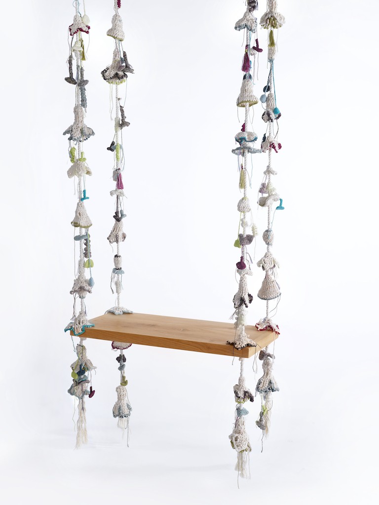 Ed ecco quindi che prendono vita tappeti, sgabelli, cuscini e addirittura altalene, il tutto realizzato esclusivamente tramite la lavorazione dell’uncinetto, una delle più antiche tecniche di lavorazione del filato.