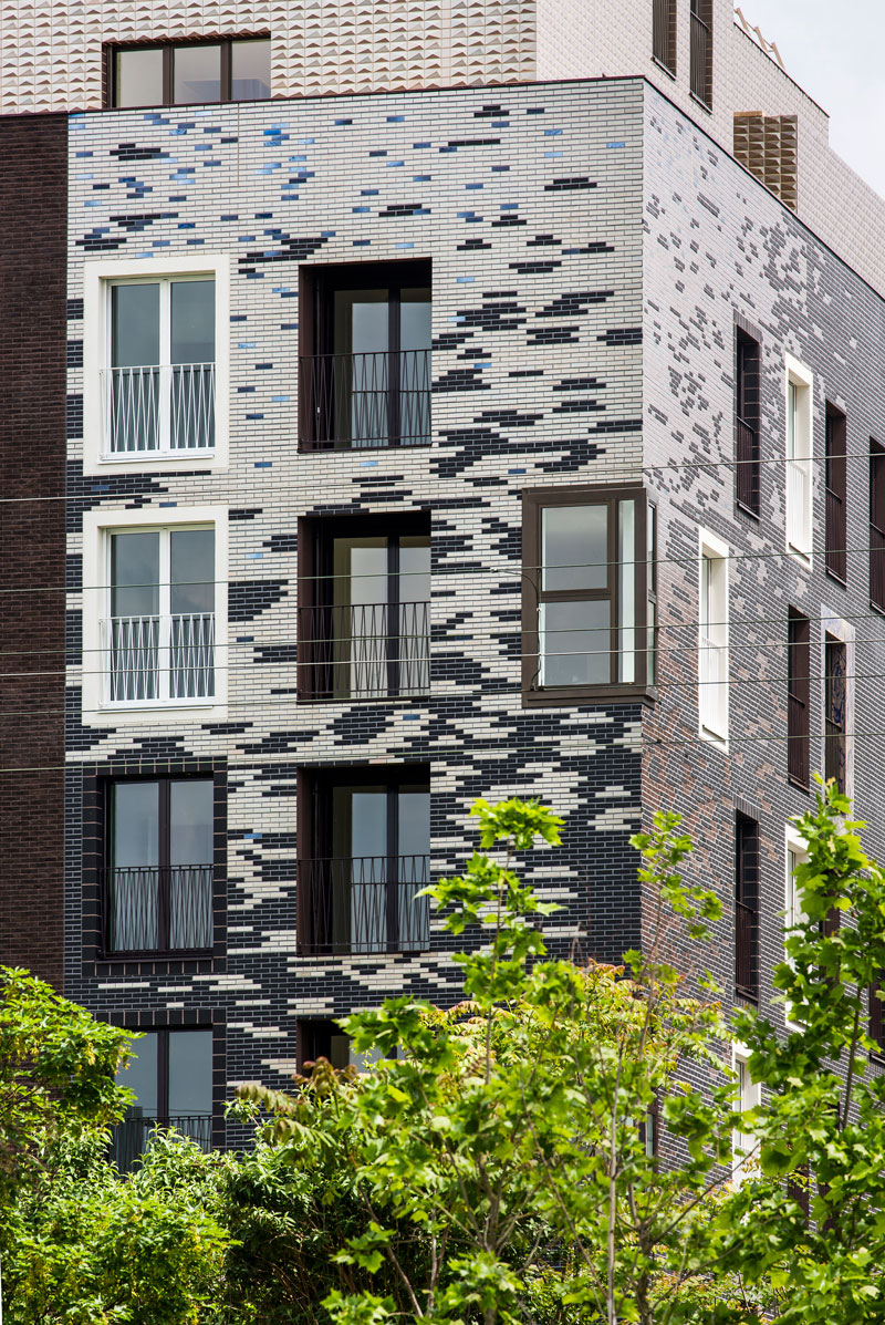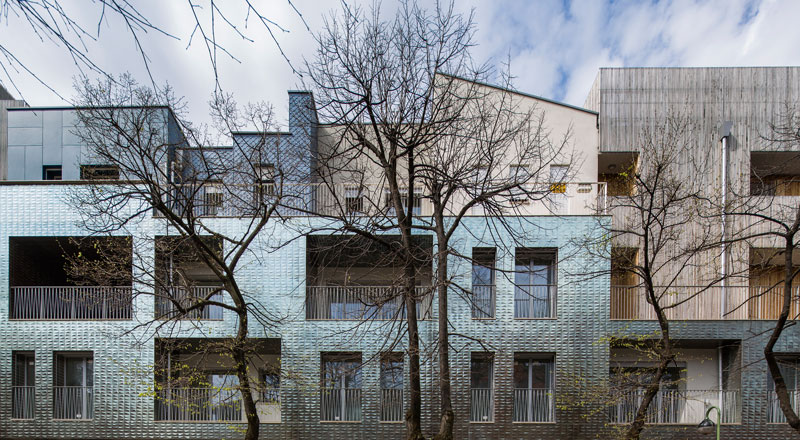 Terzo ed ultimo – di questa selezione – progetto residenziale. Il complesso è costituito da quattro edifici che includono 144 unità abitative a prezzi accessibili e 39 residenze sociali, oltre ad uno spazio commerciale. Il progetto è fortemente caratterizzato dalla scelta di riaffermare il ruolo dell’ornamento; il decoro qui riappare come strumento di identità urbana, grazie alla scelta di combinare diversi materiali, tra i quali la ceramica, che con Diamante Boa nelle tre diverse colorazioni oro, bianco e argento, diventa una vera e propria decorazione che si trasforma e cambia a seconda della luce, delle ore del giorno e delle stagioni.
