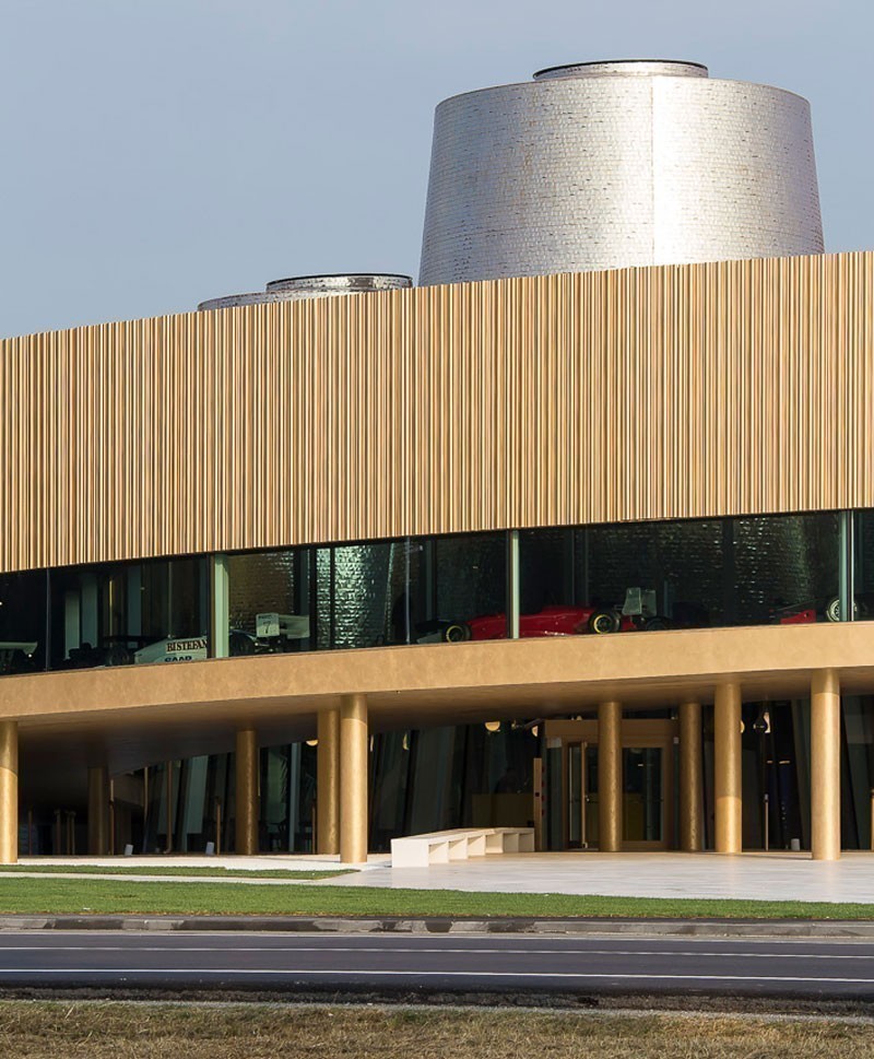 Il complesso espositivo “Dallara” si trova a Varano de’ Melegari in provincia di Parma, in un contesto di qualità paesaggistica posto su una dorsale collinare dove sono presenti aree agricole, lotti produttivi e residenziali. L’edificio si compone di tre diverse aree: Educating, spazi di didattica e laboratori, dove si svolgono attività complementari al museo; Learning, luogo dedicato al Master Post Universitario sui temi tecnologico-progettuali legati al Motorsport e Living, il vero e proprio museo ed area espositiva. Il progetto nasce dall’aggregazione di fasi ed elementi distinti, affiancati tra loro in equilibrio. Le differenti funzioni sono leggibili dall’esterno perché a ciascuna è delegato un determinato volume e a ciascun volume è associata una propria “pelle”. La scelta dei vari materiali segue un principio di attenzione nei confronti dell’inserimento nel paesaggio: i toni della vegetazione, la palette calda degli intonaci di facciata dell’edilizia tradizionale circostante e i rivestimenti cementizi degli stabilimenti produttivi.