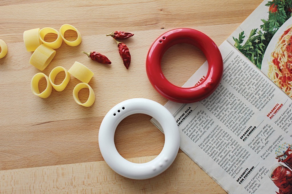 A dimostrarlo diversi suoi prodotti come la saliera e pepiera in ceramica FëlFël: l’insolita forma ad anello conferisce al suo impiego un’impronta ludica, ma soprattutto si connette emotivamente con chi lo utilizza trasformando un gesto quasi automatico in un momento di allegria.