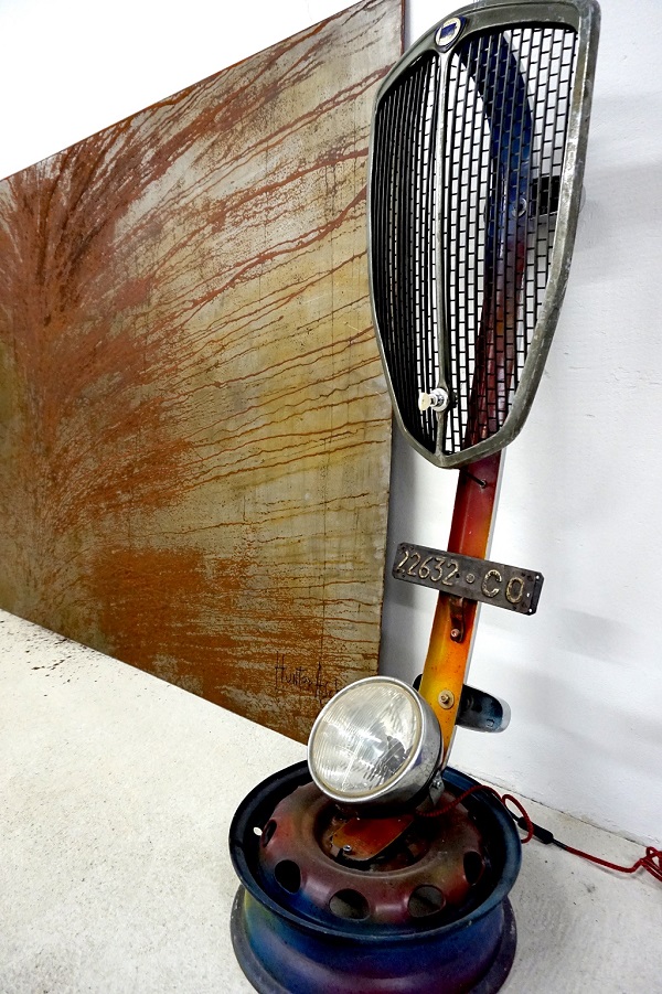Un vero e proprio impulso creativo che si è manifestato inizialmente attraverso un percorso pittorico per poi approdare definitivamente alla materia attraverso un ironico gioco della metamorfosi: la trasformazione da aridi pezzi di automobili in opere luminose, in veri e propri pezzi di design.