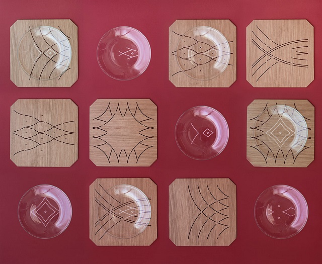 Si ispira invece alla Mole Antonelliana, Torino, una collezione di piatti in vetro e sottopiatti in legno la cui decorazione, riportata sugli oggetti, vuole essere un omaggio all’edificio monumentale simbolo della capitale piemontese e uno dei simboli d’Italia.
