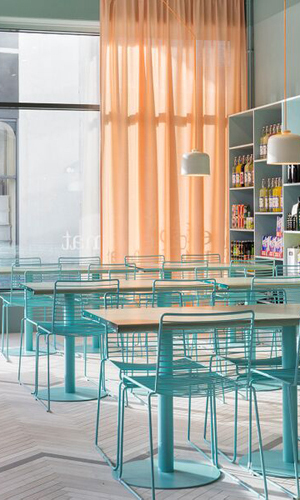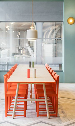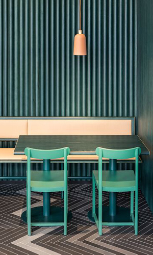 In un nuovo quartiere nel sud di Stoccolma, la Note design studio dà vita a un originale e caratteristico locale. La particolarità e la sfida affrontata dai progettisti è stata quella di riuscire a combinare nello stesso spazio caffetteria, ristorante e bistrot. La multifunzionalità di questo nuovo ritrovo doveva, perciò, garantire un apertura continuativa dalle 7 di mattina per la colazione fino alle 19 di sera per una bevuta con gli amici.