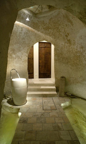La magia si scorge proprio nell’essere completamente avvolti dalla pietra che si trasforma e modella in parete, soffitto e seduta.
