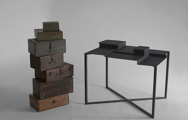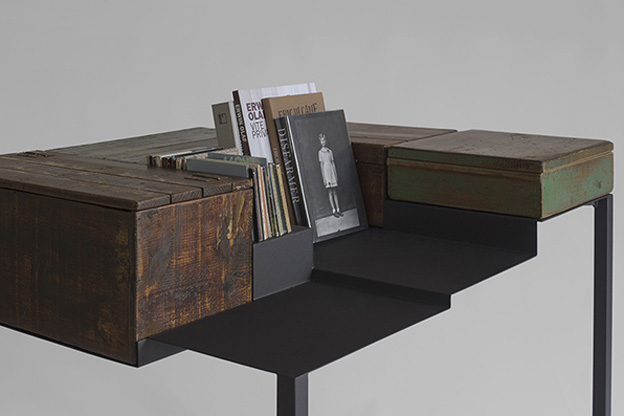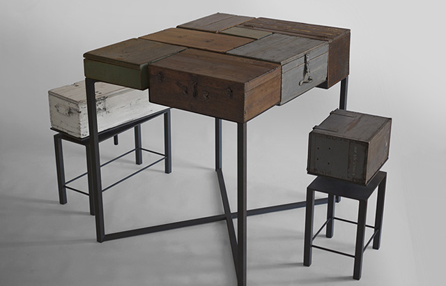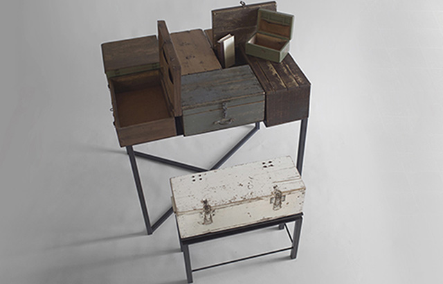Il suo lavoro parte dai vecchi garage, dalle cantine, dai ripostigli e dalle zone abbandonate dove raccogliere ciò che prima o poi diventerà qualcosa di nuovo e potrà essere riutilizzato portandosi dietro tutta la storia e i ricordi di chi lo possedeva prima e se n’era preso cura. Così una porta, una scatola o un tavolo vengono rivisitati e trasformati come è accaduto per Box sir, un tavolo ricavato da scatole di legno dell’inizio del secolo opportunamente restaurate e posizionate per creare un piano.