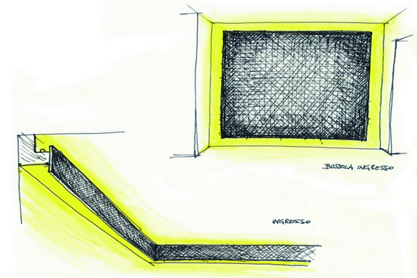 Questi concetti possiamo ritrovarli, ad esempio, nelle due sale di ingresso, dove i caratteri di sobrietà e di rappresentanza si fondono per accogliere e “dialogare” con il visitatore. Una serie di fotografie significative delle vicende del Duomo di Milano verranno appese a rotazione alle pareti. A tal fine si è studiato un sistema per assolvere l’esigenza di esaltare queste esposizioni ma che potesse anche integrarsi con le condizioni architettoniche e di immagine dei luoghi. La fascia (tecnologica) orizzontale che incornicia il perimetro della sala d’ingresso principale è dotata di una superficie illuminante rivolta verso il basso e di un’apertura luminosa, che la stacca dal soffitto, nella parte superiore. La morbidezza della luce emessa permette di illuminare in modo uniforme le zone di passaggio e la sua vicinanza alle pareti perimetrali consente di lavare le stesse con una delicata sfumatura. Il soffitto invece è evidenziato dallo spessore di aria e luce nella parte soprastante la cornice tecnologica.