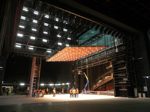 Il progetto del nuovo Teatro dell’Opera di Firenze (OF), destinato a ospitare in una nuova sede le produzioni teatrali dello storico Maggio fiorentino, si è sviluppato in cinque anni e ha comportato una realizzazione a “step”. Il primo passaggio si è concluso nel dicembre del 2011, con un concerto di Zubin Meta. Fino a quella data, il progetto di illuminazione si era basato su un sistema tradizionale con un impianto gestito da mixer e dimmer ADB e da una rete – distribuita in sala, nel golfo mistico e sul palco – impostata su prese destinate ad alimentare il vecchio parco luci di cui il Maggio già disponeva al Teatro Comunale. Il primo step si è concluso con il completamento della platea e della galleria e con l’allestimento di una camera acustica sul palco (il rimanente allestimento scenotecnico sarebbe stato rimandato allo step successivo). Il lighting del palco ha comportato pertanto solo l’allestimento delle luci in sala (sul palco ci si è limitati ad alimentare proiettori – tradizionali – collocati su truss dentro la camera acustica e dimensionati per assorbire fino a 40W).