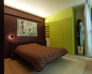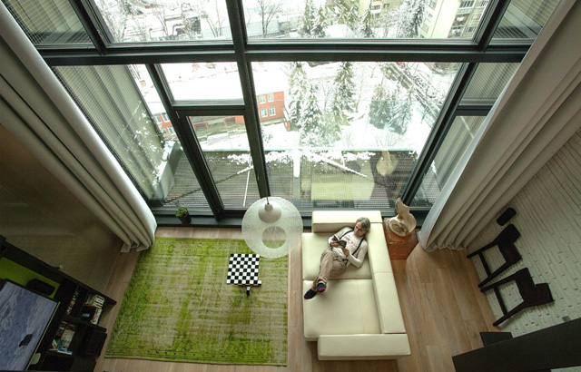 Situato al 12°piano dell’edificio “Red apple” a Sofia, si contraddistingue per l’uso moderato di materiali naturali in pieno contrasto con il concetto di loft: legno e mattoni. Anche il design pulito e minimalista, concorre alla creazione di forti contrapposizioni tra i diversi elementi dell’abitazione. Il colore verde gioca un ruolo importante che accompagna lo sguardo per tutta l’abitazione. Ogni ambiente ha, infatti, un richiamo a questa tonalità che probabilmente sintetizza piacevolmente natura, avventura e profonda meditazione.
