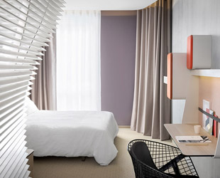 La prima sede della catena Okko Hotels ha preso vita a Nantes. Requisiti chiave: un’ottima posizione per la massima accessibilità alla città e un interior a tutto design, tecnologia e genuinità. La progettazione essenziale e pura di Norguet accoglie i clienti in uno spazio che profuma di casa ma offre loro tutto ciò che si può chiedere a un 4 stelle. Alle stanze di 18 metri quadrati dallo stile urbano non manca nulla, in una fusione di eleganza, modernità e tecnologia che riprende la filosofia di Okko Hotels. Lo stesso vale per il Club dell’hotel, vero punto nevralgico della struttura, che in ben 200 metri quadri crea un contesto conviviale ma allo stesso tempo privato in grado di incontrare le esigenze dei clienti in viaggio di lavoro o di piacere: ecco allora un’ampia sala da pranzo, un angolo business con iMac e stampanti, una biblioteca e un centro fitness con tanto di palestra e sauna, il tutto accessibile senza alcun sovrapprezzo.