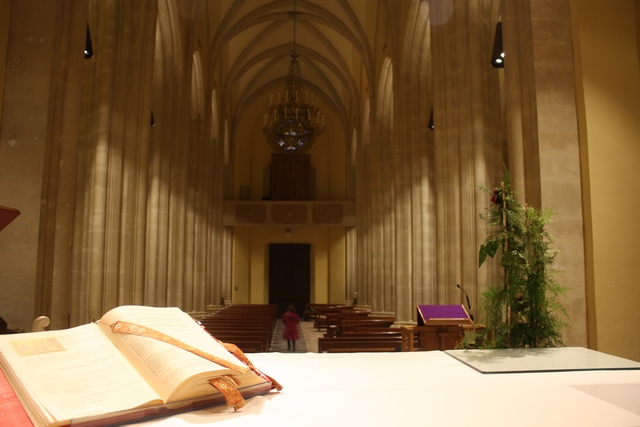 Il concept del progetto ha previsto il rispetto degli effetti luminosi ottenuti con luce naturale filtrata attraverso le vetrate artistiche, integrando quest’ultima con la sostituzione dei globi esistenti equipaggiati con lampade fluorescenti con apparecchi a sospensione realizzati su progetto dello studio Ingrosso. quest’ultimi garantiscono un adeguato livello di illuminamento delle navate e una migliore percezione dello spazio architettonico, oltre al contenimento dei consumi energetici grazie a un sistema di gestione capace di gestire gli scenari luminosi in funzione dei diversi utilizzi.