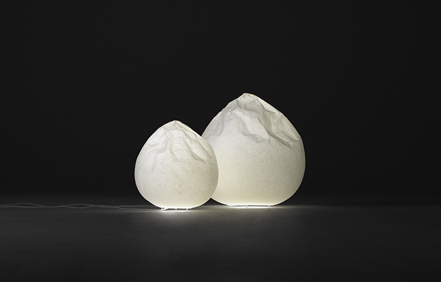 Le lampade di design semi-wrinkle washi si presentano come forme dotate di una doppia superficie: la parte inferiore è tesa e richiama la caratteristica principale del washi, la cui resistenza rimanda addirittura alla plastica o al vetro. La parte superiore invece è contraddistinta da un effetto stropicciato, ottenuto con l’aggiunta di estratto di una pianta tipicamente asiatica, il konjac, per aggiungere un tocco di modernità alla lavorazione di questa carta tradizionale e di conseguenza al prodotto stesso.