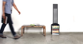 E’ originale, quindi, pensare di poter utilizzare lo spazio antistante lo sticker come libreria e seduta impilando da terra fino all’altezza desiderata libri, giornali e riviste. Una soluzione moderna, pratica e insolita che si sviluppa anche come provocazione contro l’accanimento produttivo e l’eccessivo utilizzo di materiali ed energia nella produzione industriale.