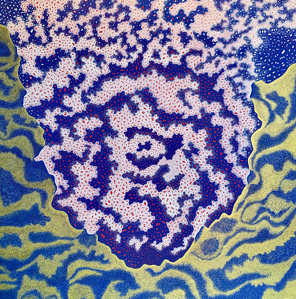 Dopo aver sperimentato diversi linguaggi pittorici, sceglie di avere come compagno di viaggio l’Uniposca, l’iconico marcatore. Tela, carta e gesso ospitano mondi eterei, paesaggi immaginari, micro habitat che le permettono di esprimere il sottile confine tra la leggerezza e le inquietudini, tra lo zen e le ossessioni.