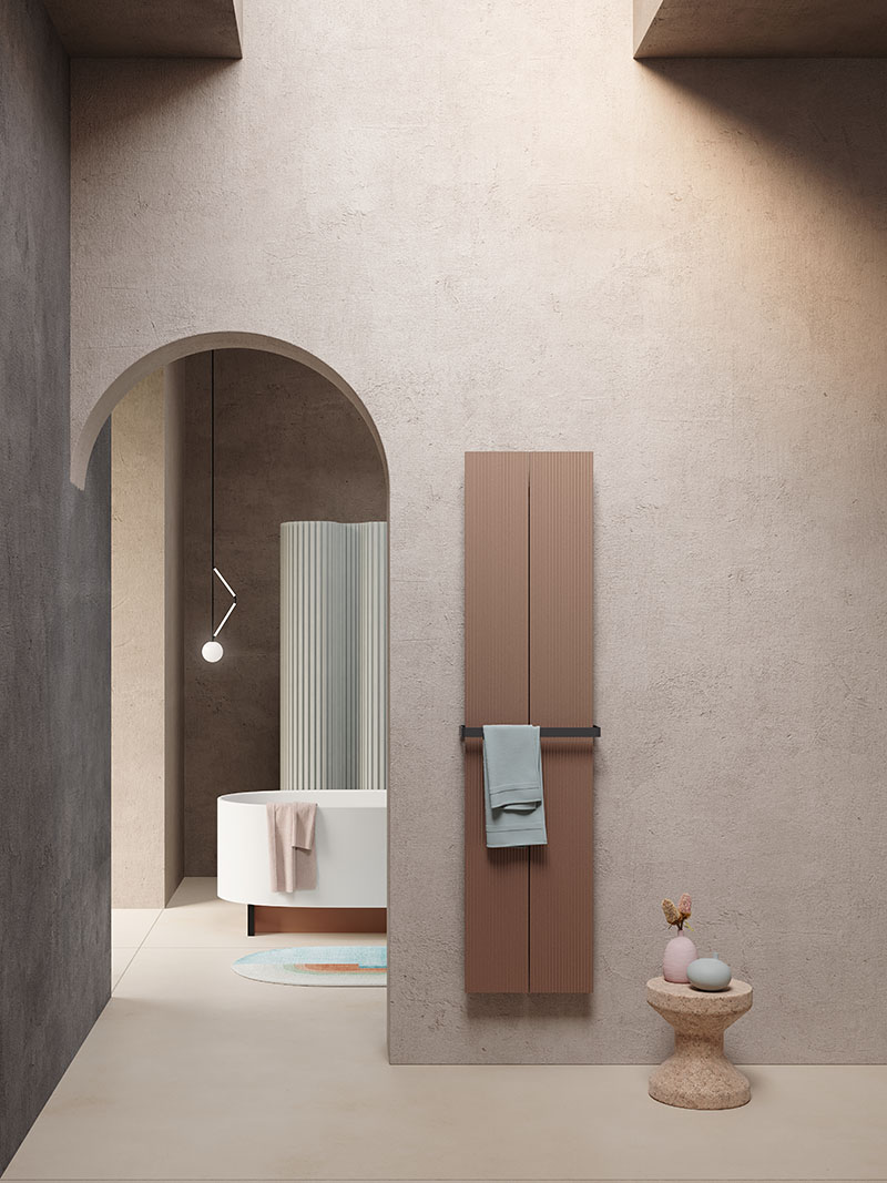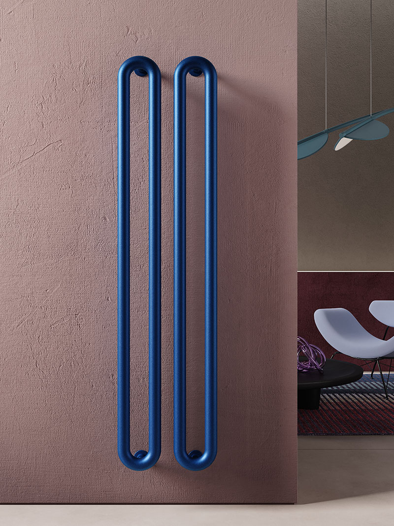 Il radiatore è proposto in oltre 200 varianti cromatiche, accessoriabile con maniglione porta salviette e installabile in orizzontale o in verticale: in quest’ultima configurazione è possibile la scelta dell’alimentazione ad acqua o elettrica.