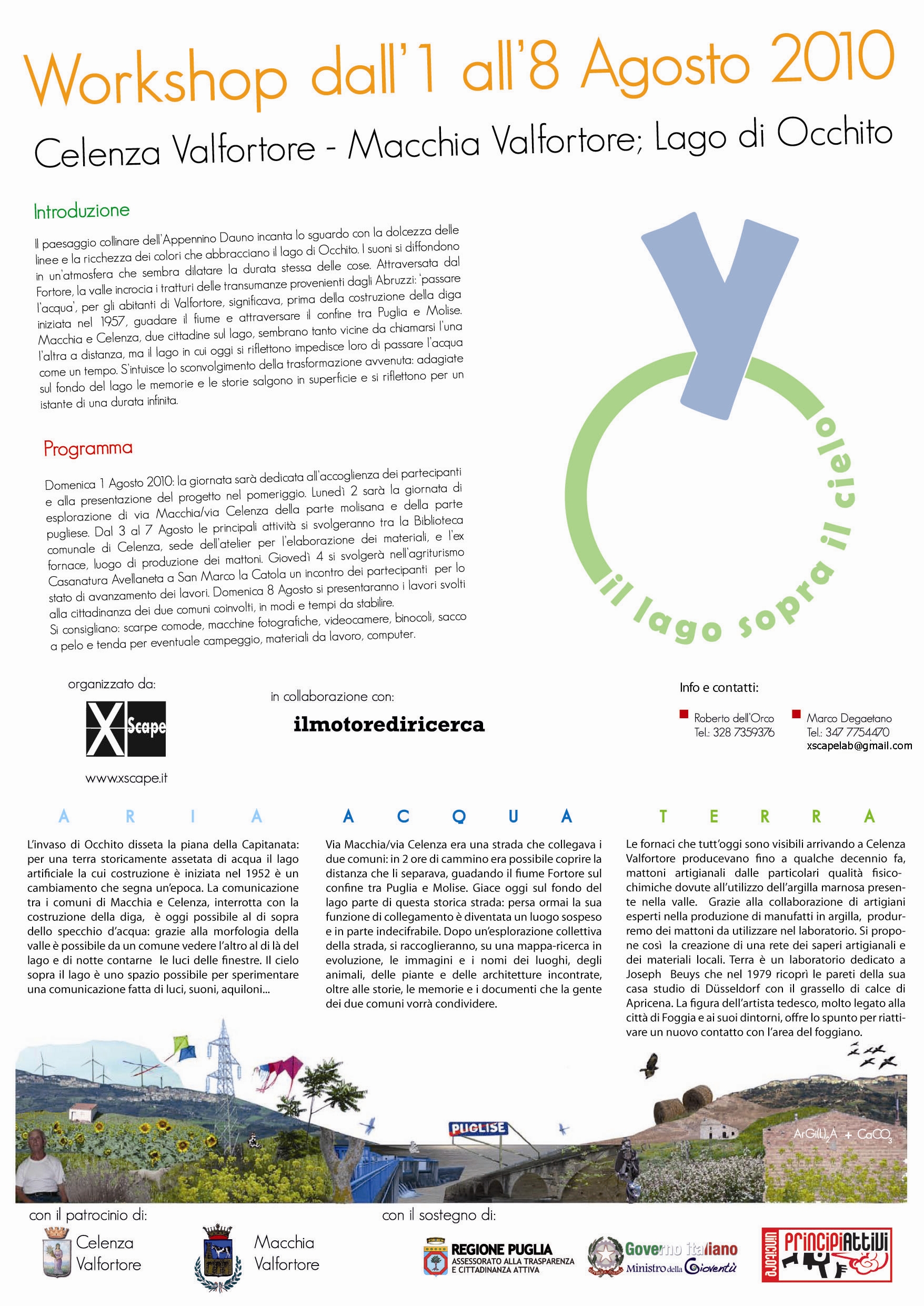 Il workshop verterà sul tema del confine accentuato dalla presenza "imposta" del lago artificiale della diga di Occhito sul fiume Fortore che ha fortemente trasformato il paesaggio e le sue tradizioni, interrompendo la comunicazione tra due Comuni e due Regioni.