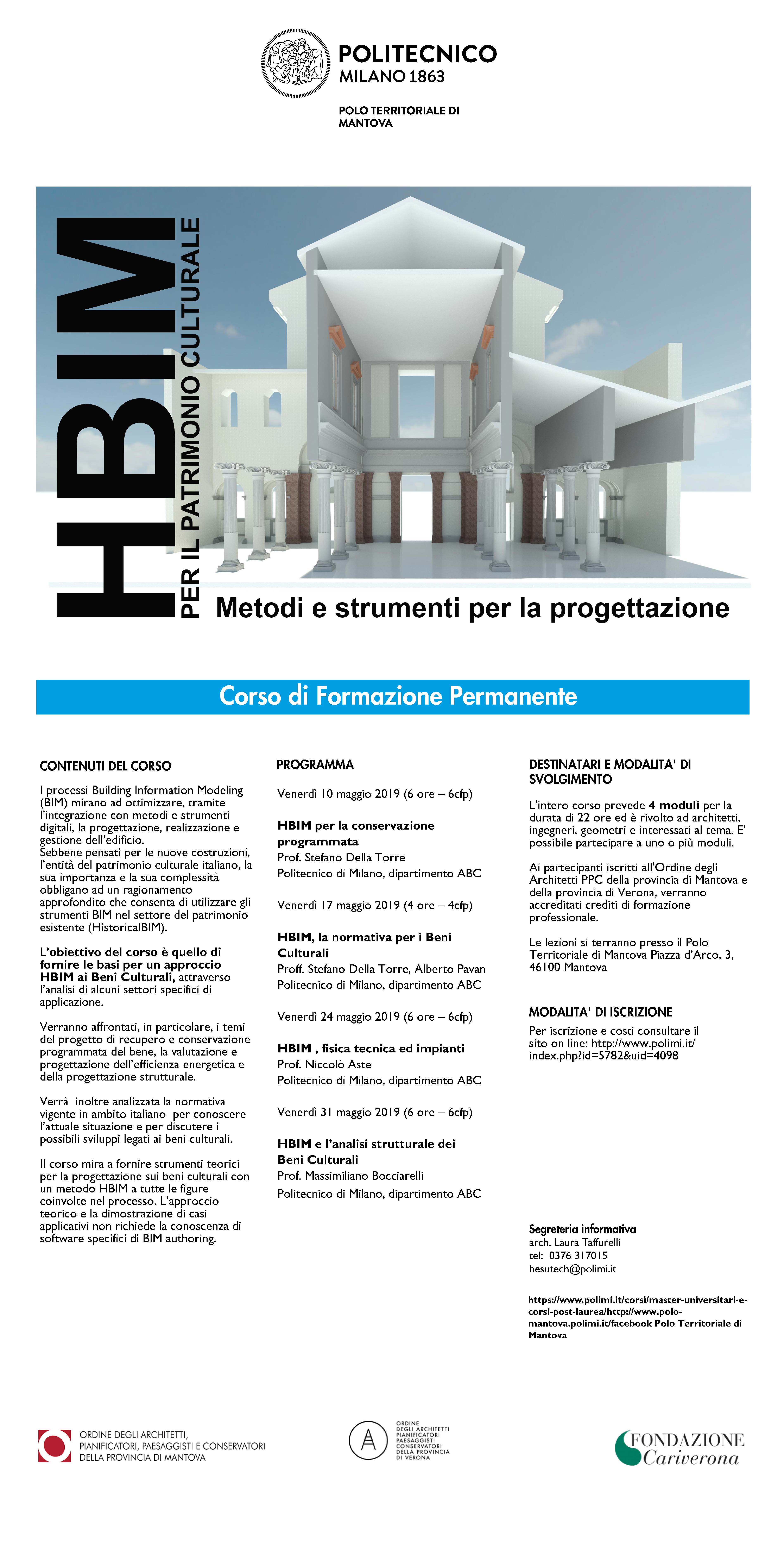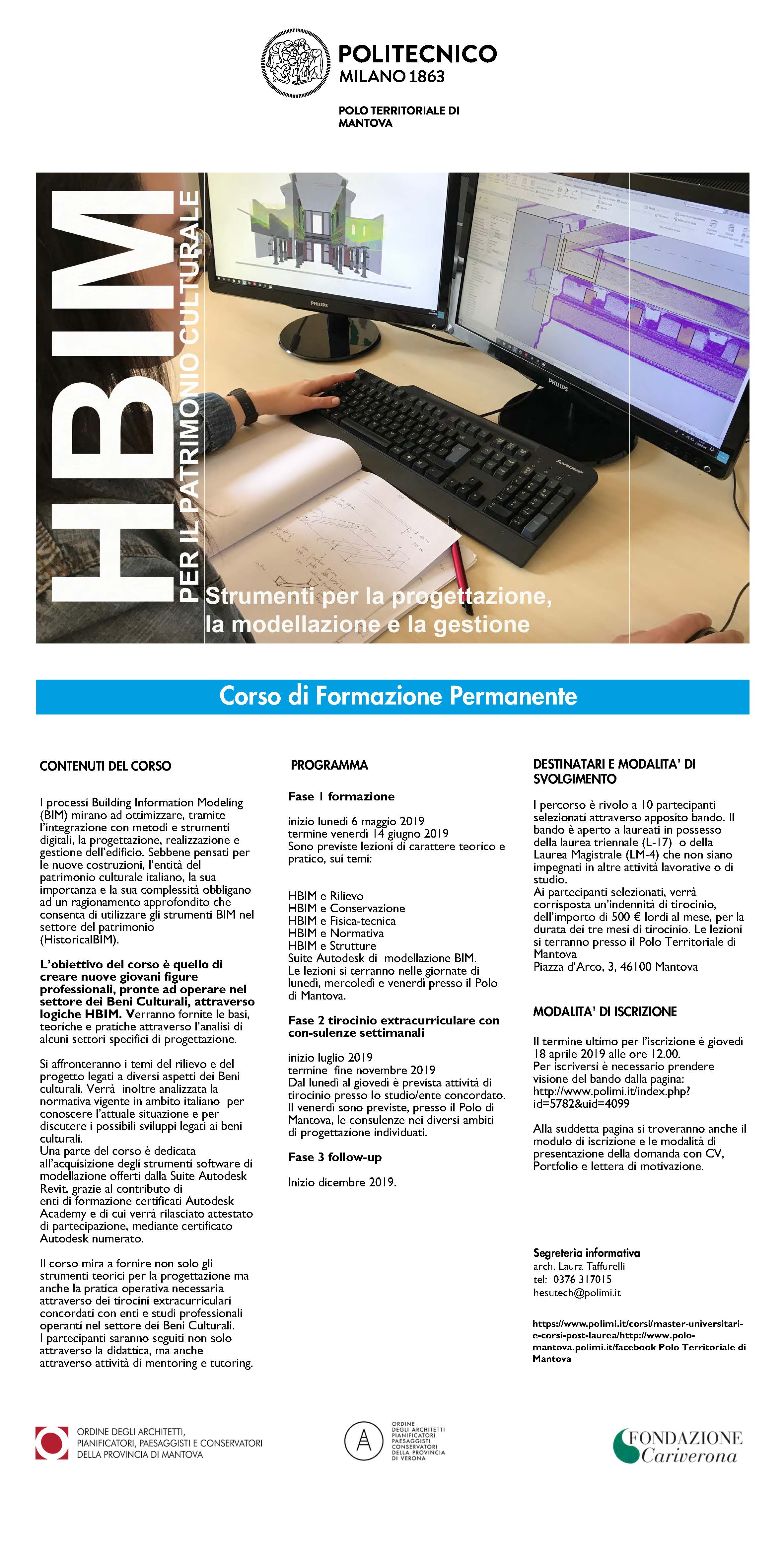 Il MantovaLab del Polo territoriale di Mantova lancia due azioni formative mirate a formare nuove figure professionali in grado di operare nel settore dei Beni Culturali attraverso le logiche dell'HBIM, ovvero l'approccio del Building Information Modeling applicato al settore dell'Heritage.