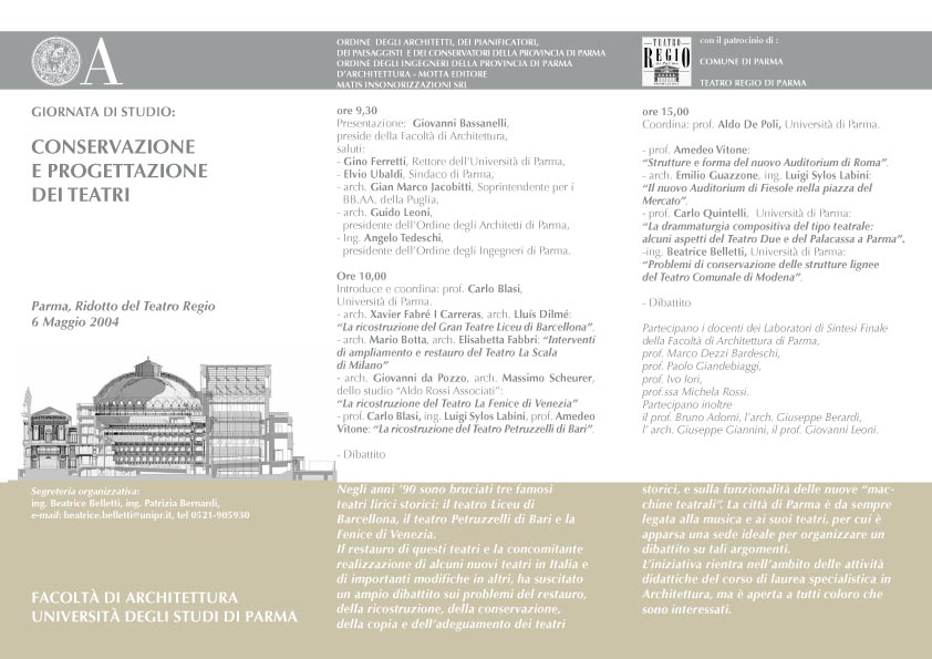 Nell'ambito delle attività didattiche del "Laboratorio di Sintesi Finale" del Corso di Laurea Specialistica in Architettura, la Facoltà di Architettura ha organizzato una giornata di studio sul tema della conservazione, della ricostruzione in copia e della progettazione dei teatri.
