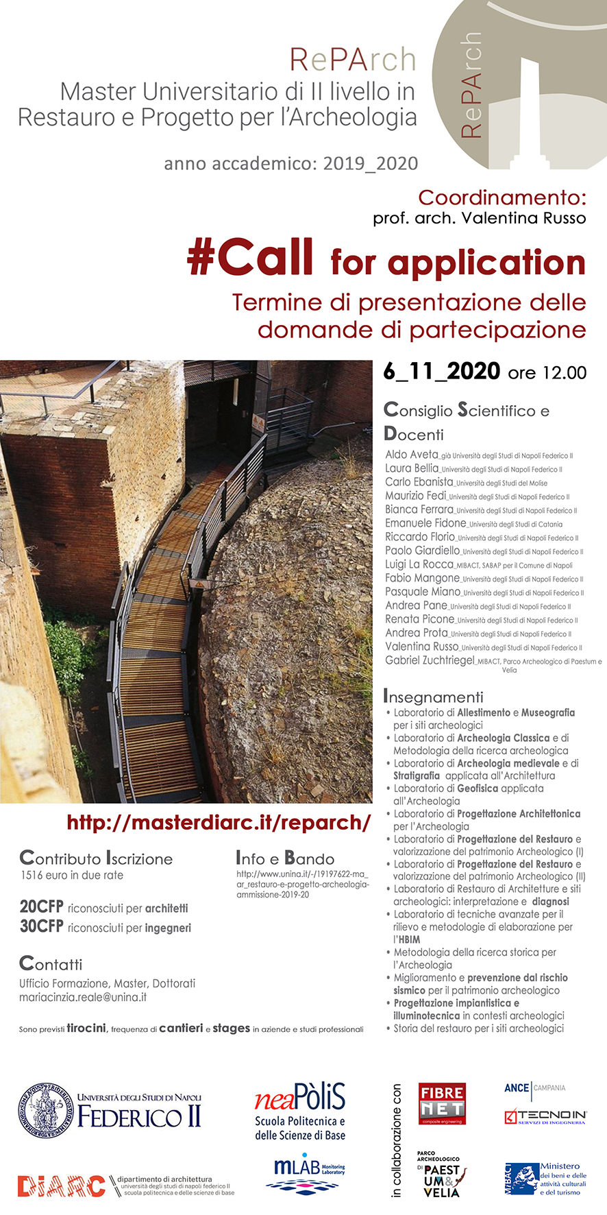 Con lezioni a distanza, esercitazioni sul campo, conferenze, seminari e stages, è pronto per ripartire il master di II livello "Restauro e progetto per l'archeologia", organizzato dal Dipartimento di Architettura (DiARC), Università degli Studi di Napoli Federico II e coordinato dalla prof. arch Valentina Russo.
