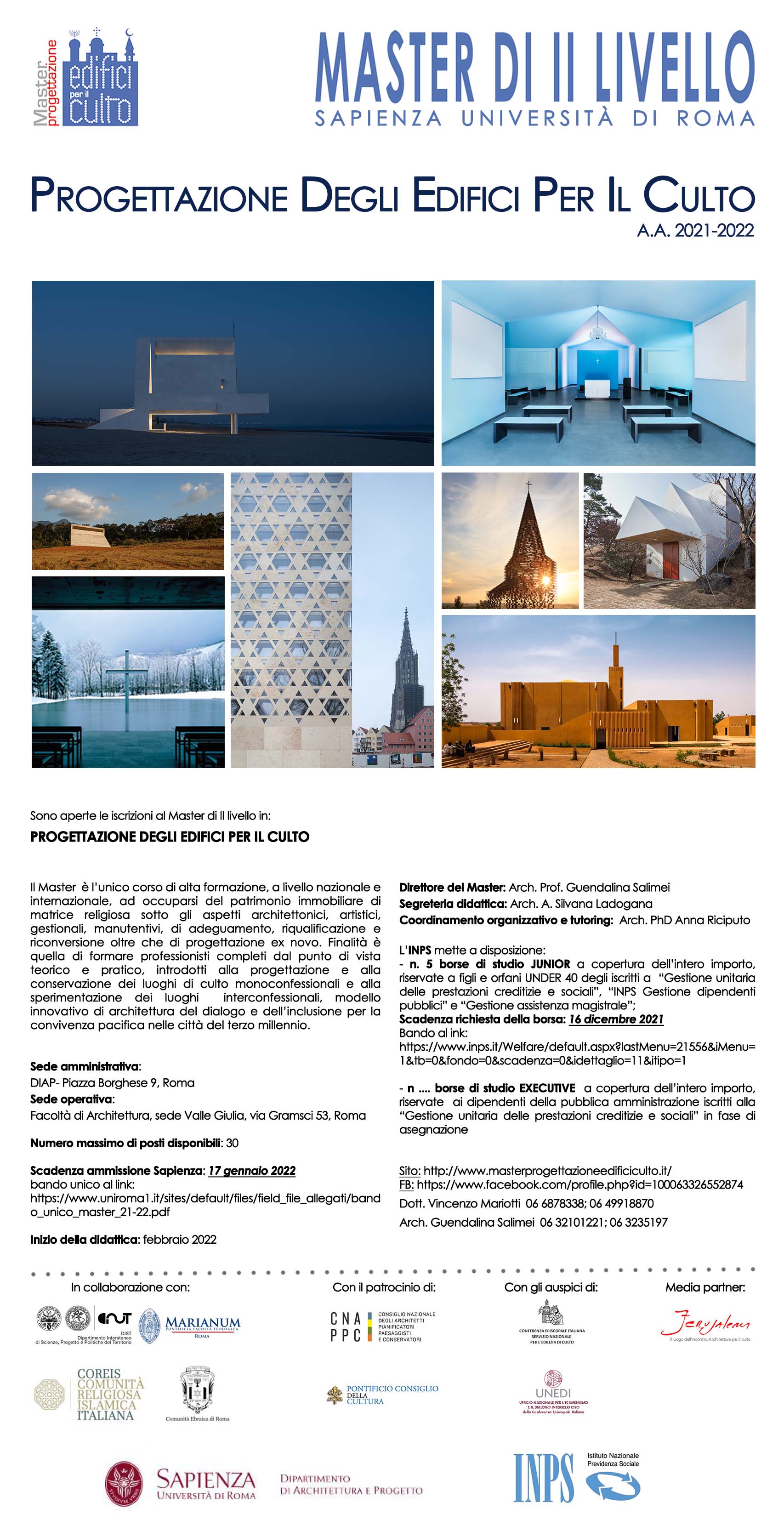 Il Dipartimento di Architettura e Progetto della Sapienza ha aperto le iscrizioni alla XII edizione del master "Progettazione degli edifici di culto".