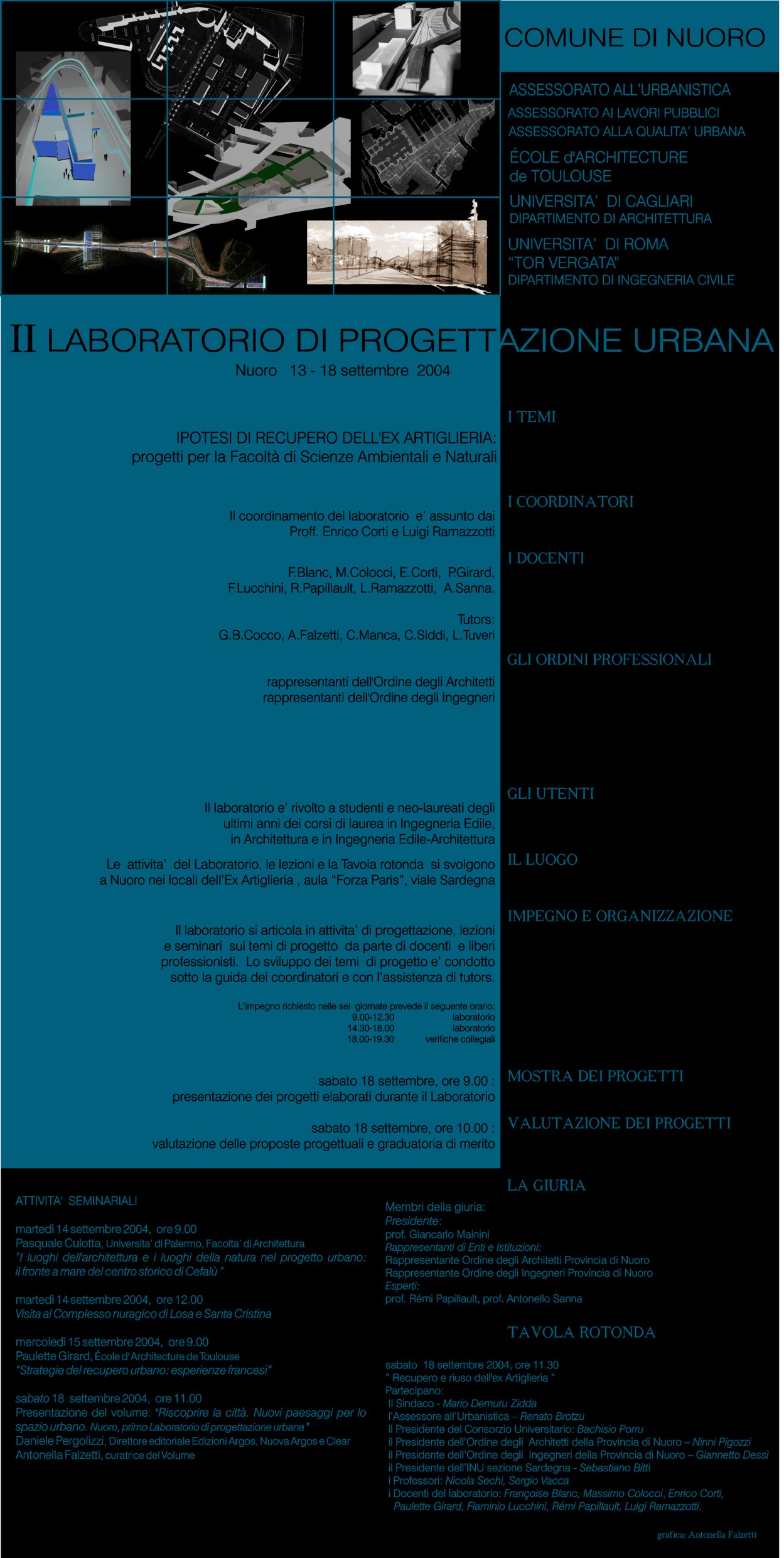 Si svolgerà a Nuoro, dal 13 al 19 settembre 2004, il 2° Workshop Internazionale di progettazione urbana organizzato dal Dipartimento di Architettura dell'Università di Cagliari, dall'Ecole d'Architecture di Toulouse, dall'Università di Roma "Tor Vergata" e dal Comune di Nuoro.
