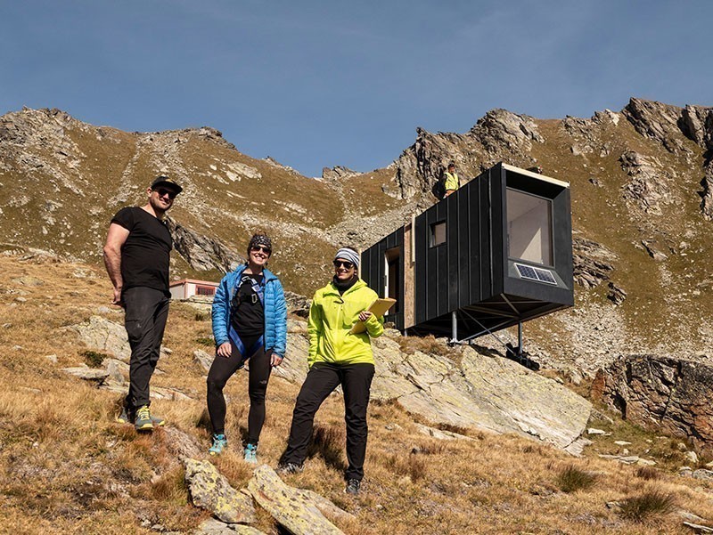 Bivacco Brédy | Facundo Arboit, Skye Sturm Chiara Tessarollo vicino alla loro realizzazione