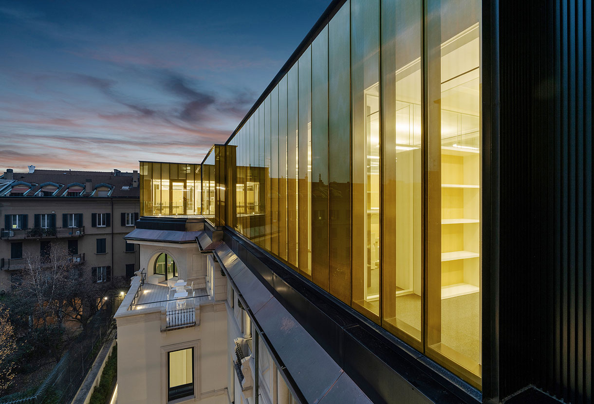 Park Associati, lo studio di architettura fondato da Filippo Pagliani e Michele Rossi, completa a Milano la ristrutturazione (con sopralzo) di due edifici di diverso stile di Pietro Portaluppi.