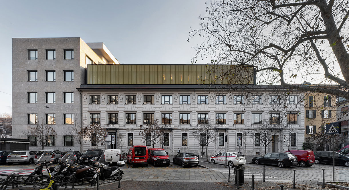 Park Associati, lo studio di architettura fondato da Filippo Pagliani e Michele Rossi, completa a Milano la ristrutturazione (con sopralzo) di due edifici di diverso stile di Pietro Portaluppi.