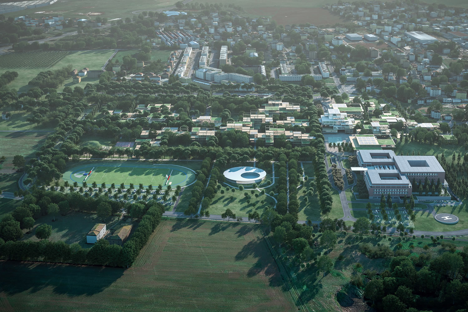 Campus Bio-Medico di Roma, le proposte di nove grandi firme dell’architettura - 11 La proposta di Mario Cucinella Architects vista aerea del progetto di masterplan pubblicato in data: 18/07/2018