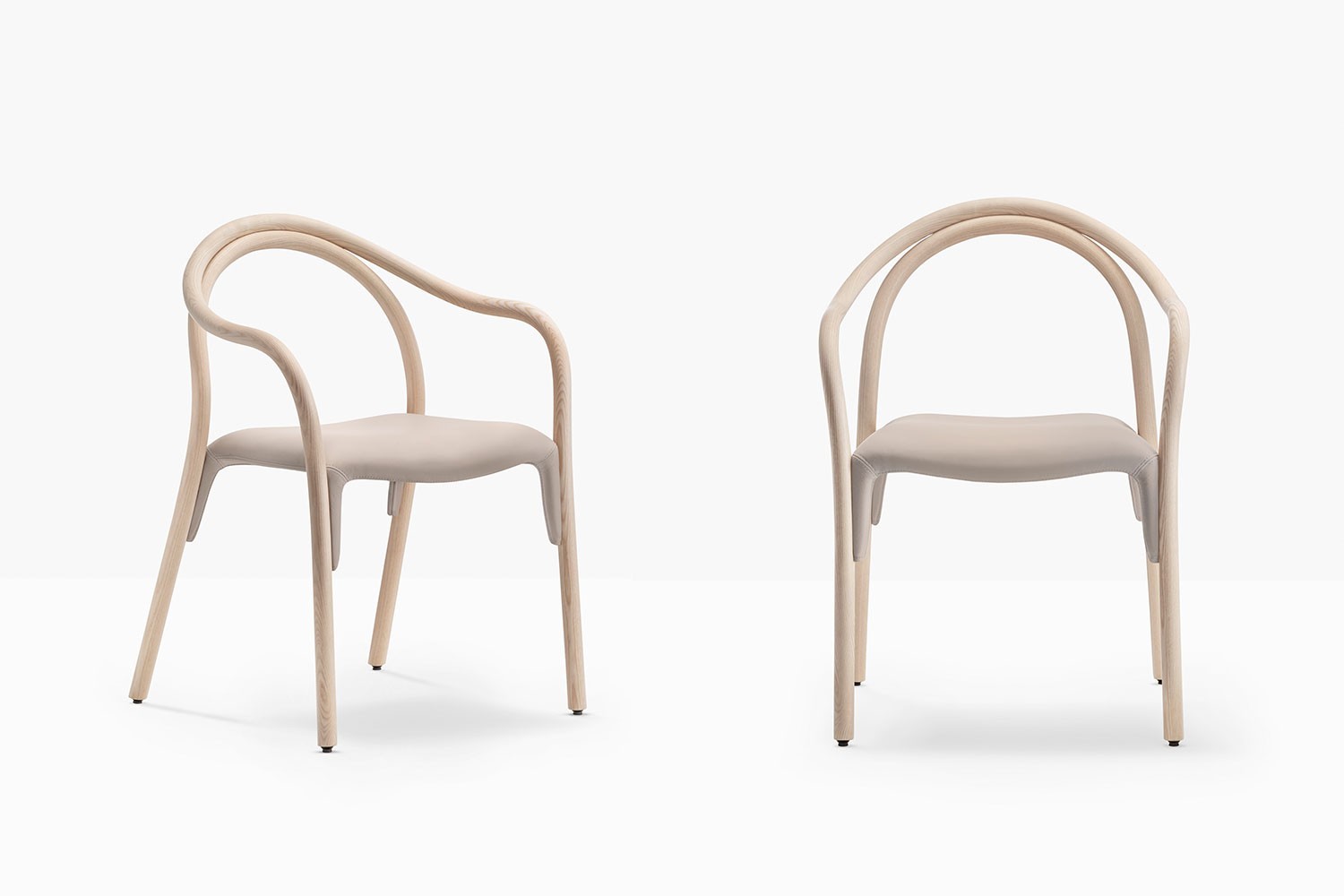 Materiali: struttura in massello di frassino, sedile in policarbonato imbottito in poliuretano espanso.