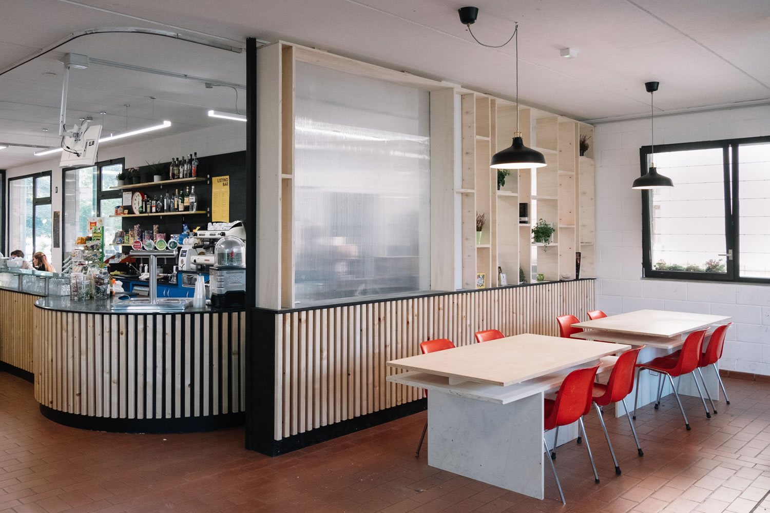 Lo spazio dell’emeroteca (sarà completato con l’arrivo di libri in possesso della parrocchia) e sullo sfondo il bar.