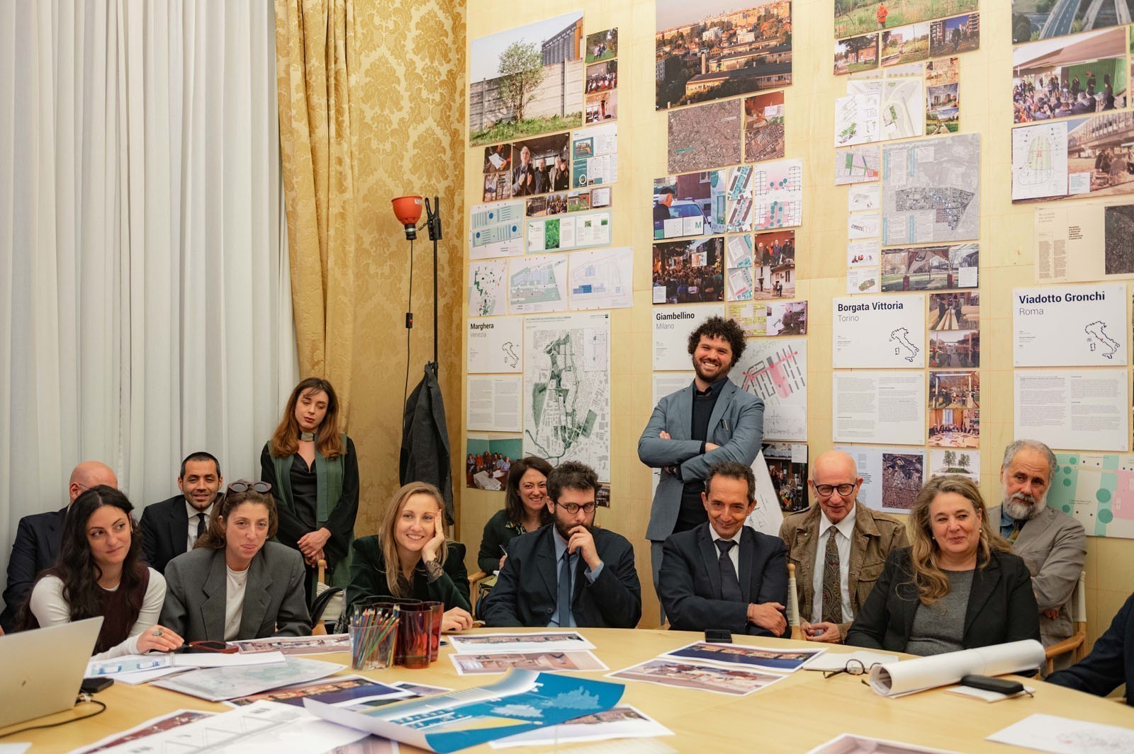 Prosegue il lavoro dei borsisti delle università Federico II, Sapienza e Padova. Nella sede del G124, insieme ai loro tutor, hanno discusso con Renzo Piano dei progetti e cantieri in corso nelle città di Padova, Roma, Napoli e Sora.