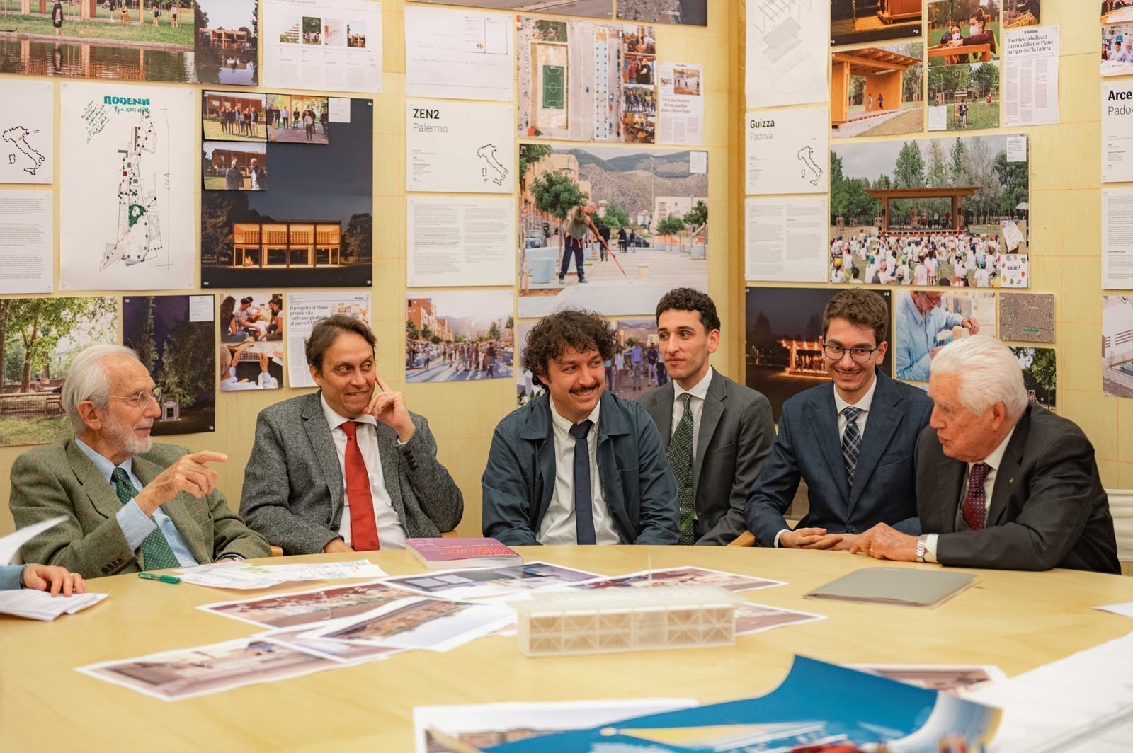 Prosegue il lavoro dei borsisti delle università Federico II, Sapienza e Padova. Nella sede del G124, insieme ai loro tutor, hanno discusso con Renzo Piano dei progetti e cantieri in corso nelle città di Padova, Roma, Napoli e Sora.