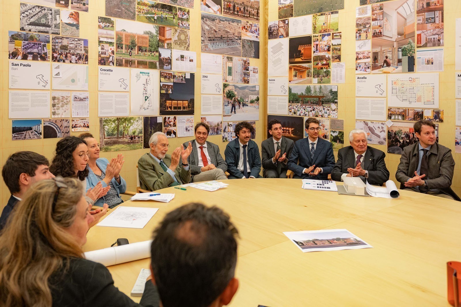 Prosegue il lavoro dei borsisti delle università Federico II, Sapienza e Padova. Nella sede del G124, insieme ai loro tutor, hanno discusso con Renzo Piano dei progetti e cantieri in corso nelle città di Padova, Roma, Napoli e Sora.