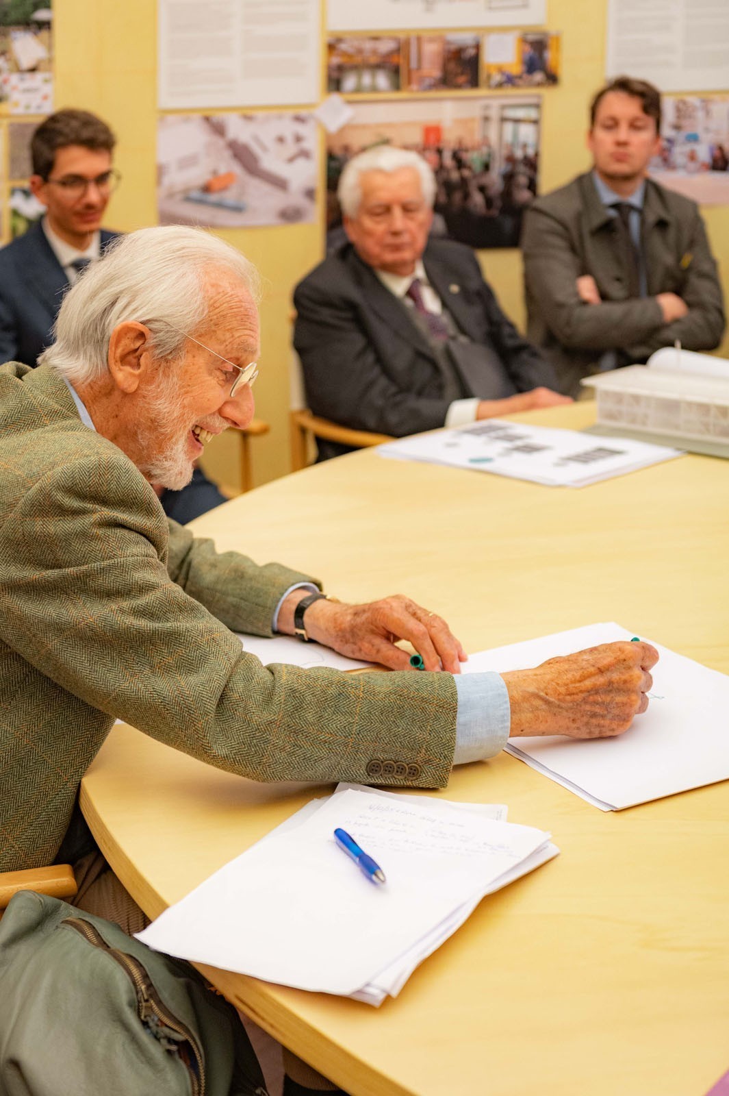 Prosegue il lavoro dei borsisti delle università Federico II, Sapienza e Padova. Nella sede del G124, insieme ai loro tutor, hanno discusso con Renzo Piano dei progetti e cantieri in corso nelle città di Padova, Roma, Napoli e Sora.