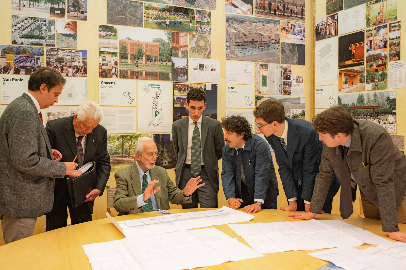 Prosegue il lavoro dei borsisti delle università Federico II, Sapienza e Padova. Nella sede del G124, insieme ai loro tutor, hanno discusso con Renzo Piano dei progetti e cantieri in corso nelle città di Padova, Roma, Napoli e Sora.
