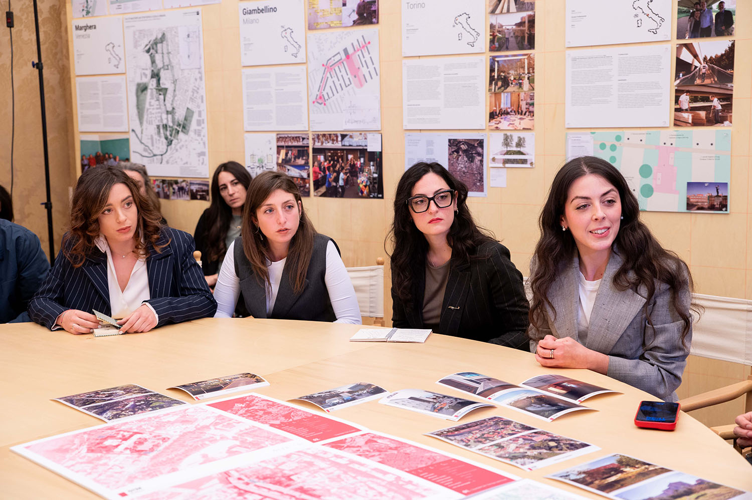 A Palazzo Giustiniani, Renzo Piano con i giovani progettisti delle Università di Padova, Federico II di Napoli e Sapienza di Roma impegnati, insieme ai loro tutor, a realizzare una casa di comunità, un laboratorio di idee e arredi design for all.