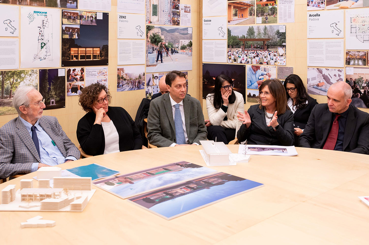 A Palazzo Giustiniani, Renzo Piano con i giovani progettisti delle Università di Padova, Federico II di Napoli e Sapienza di Roma impegnati, insieme ai loro tutor, a realizzare una casa di comunità, un laboratorio di idee e arredi design for all.